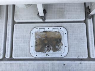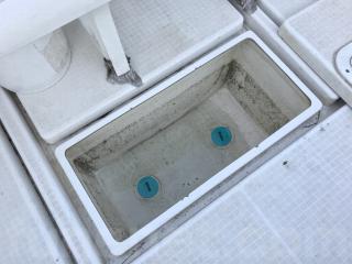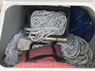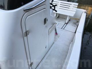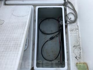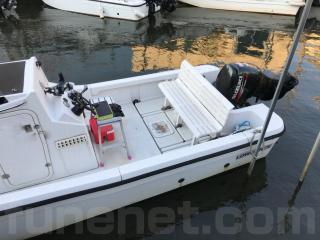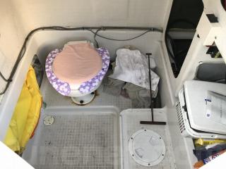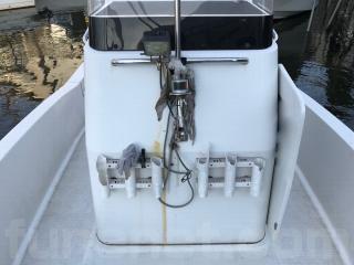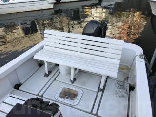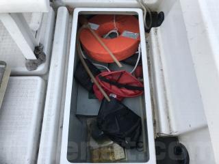 主な用途として釣りやガイド船として利用されていたということもあり後部には、ゲスト用のベンチやイケス、収納が装備されています。