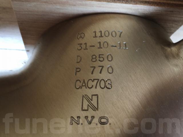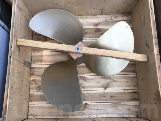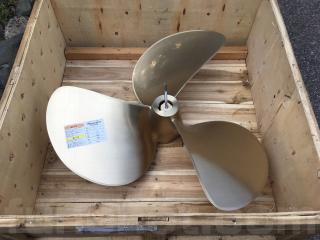 ◆ナカシマプロペラ製で、材質はCAC703、適合シャフト径はΦ70mmです。なお、ダイヤ(D)は850mm、ピッチ(P)は770mmで、右回転用と左回転用の2翼1セットです。新品購入価格は2翼で約120万円ほどとの事です。