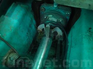 〇とも側のデッキ床下には油圧シリンダーがあります。写真でもご確認できるかと思いますが非常に外観も状態が良く年式を感じません。また、ラダーシャフト周辺よりごくごく少量の滲みが出る程度だそうです。