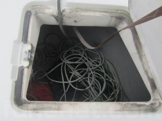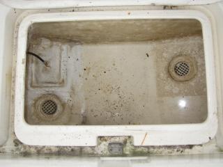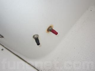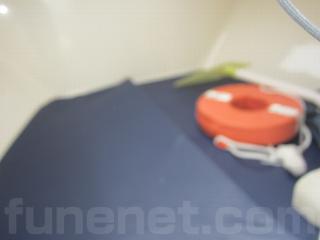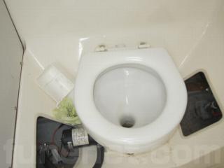 バウバースの右舷後方に個室の電動マリントイレが設置されておりますが、蓋、便座のヒンジが破損しており、又、ポンプも吐出不良のため修理が必要です。