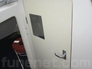 キャビンは、天井も高く広さがあり、後部がガラス製スライドドアであるため、明るく開放的な空間で、右舷にキャプテンシート、左舷に3人掛けベンチタイプのパッセンジャーシートが装備されております。