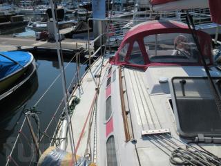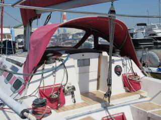 軽風から強風までニュートラルで癖のないヘルム、安全で取り扱いがしやすいリグ、広く動きやすいT型コックピット、長時間のクルーズにも疲れない深いバックレストなどが特徴のセーリングクルーザーです。