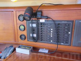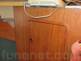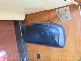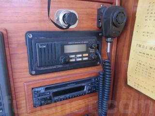 チャートテーブルにはGPS魚探(FURUNO GP-1800)、マリンVHF無線(ICOM IC-M57J)、ステレオの装備があります。無線機はありますが、アンテナは付いていませんので必要な方はご購入後にご自身でお付け下さい。