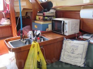 まずは入口より入って左舷側にギャレー、右舷側にチャートテーブル、両舷にソファーと大きなテーブルが目に入ってきます。