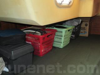 センターキャビンをそのまま進むとバウバースがあり、大人2人が横になれるベッドがあり、ゆったりとしたスペースが確保されています。