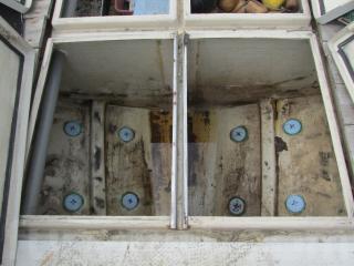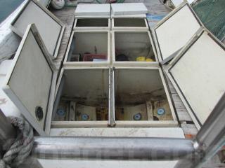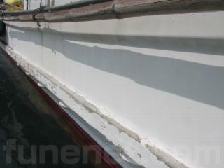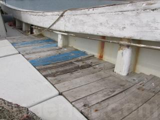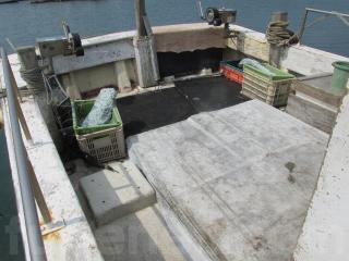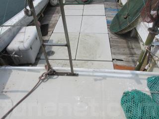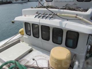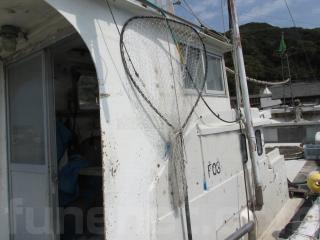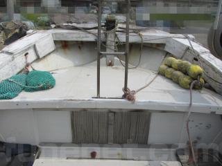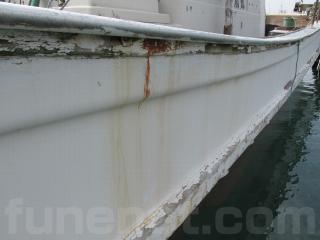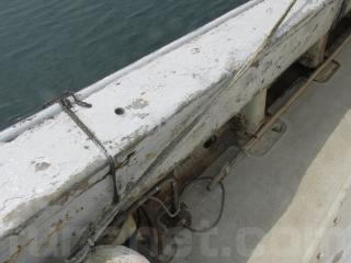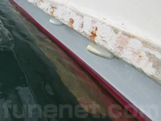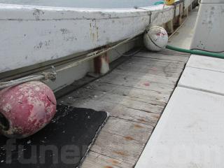 FRP船ですが、船べりには木材が使用されています。頑丈に造ってありますが、塗装の剥がれ使用感、腐食も見受けられます。