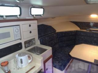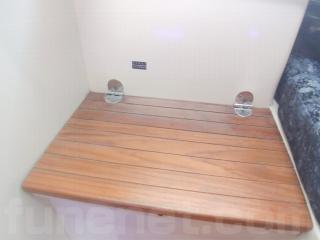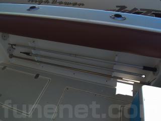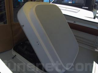 デッキ上にエンジンフードがあり、テーブルや腰掛けにも使用できるレイアウトです。またこの位置で開くのでメンテンナスも気楽にできるメリットもあります。