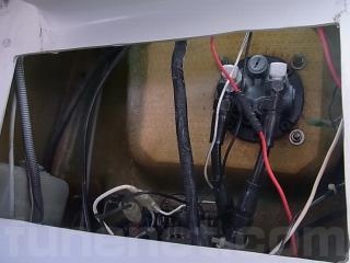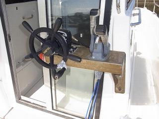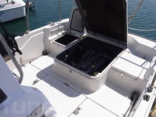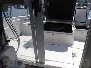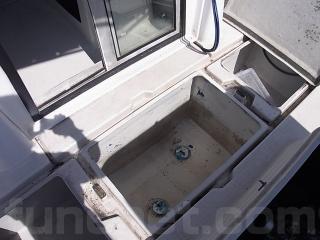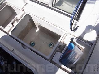 操舵室すぐ後ろに生け簀と物入れがあります。フラットタイプです。