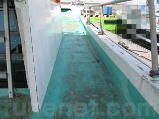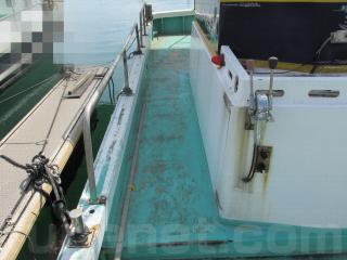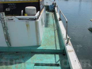 フラットなデッキが特徴のこの船は、とても作業がしやすく、運搬船としても使える船です。
