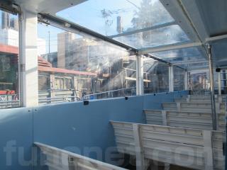 雨や風をしっかりと防ぐことが出来る屋根や窓があります。天井部分は外側半分がガラスになっていますので、座席に座りながらでも上を見上げることが出来ます。横窓も開閉式になっていますので解放感があります。