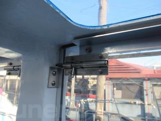 操船席は低い橋などを通過することが出来るように、屋根は上下可動式になっています。また、風防も折りたたみ式になっています。