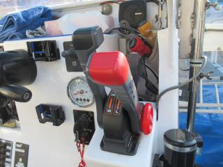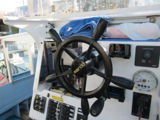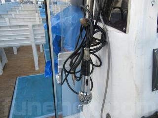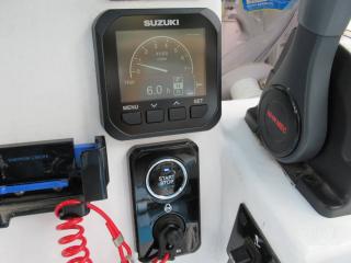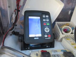 操船席にはGPS魚探(HONDEX)、船内・船外用マイク、スラスター、インバーター(1800W)、電動リール電源等が装備されています。