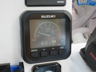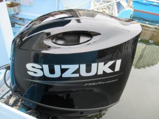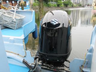 エンジンは2024年春に載せ替えを行っています。スズキ社製175馬力4ストロークの船外機です。使用時間は6時間です。