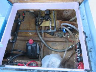 燃料タンク容量は200リットル、清水タンク容量は80リットルです。