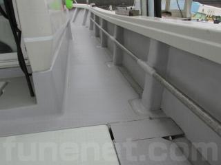 現在は係留保管されていますので、ハルには通常使用時にできた細かなスレ、色褪せ感、ステッカーのスレ等がありますが、ひどい傷は見当たりません。