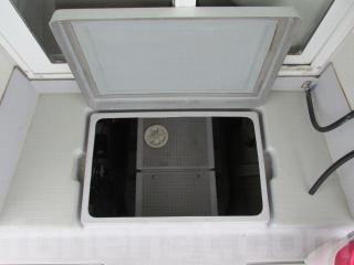 イケスは2室ありますが、右舷側の生け簀には清水を入れて、ポンプでシャワーが出るように工夫されています。