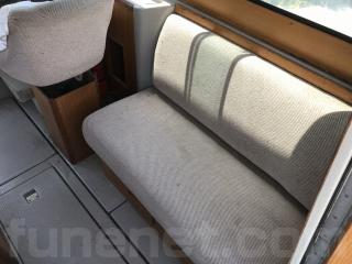 センターキャビンにはゆったりとくつろげるソファーとテーブルがあり、右舷側にもソファーが装備されています。