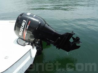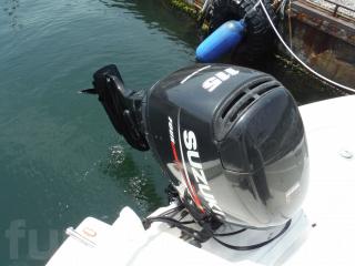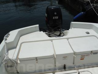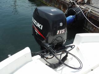 エンジンは、スズキ4スト 115馬力船外機で、約6年前に現在の展示品であった新品エンジンを換装され、片道数分の目的地への移動に使われる程度のため、使用時間はわずか33時間程度です。