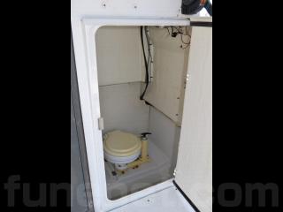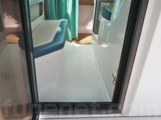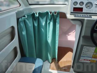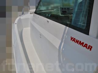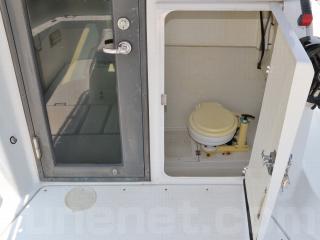 ◆ヤンマーFX24CZ-ISはセミウォークアラウンドでリアドア付きです。この艇はキャビン後方、アフトデッキ側に個室トイレがあるのも特徴です。