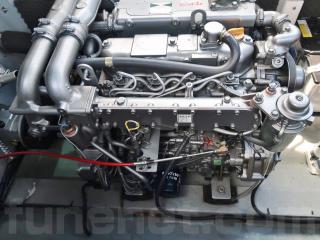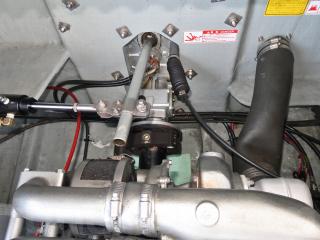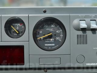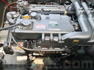 ◆エンジンはヤンマーのインタークーラーターボ付き4気筒ディーゼルエンジン、4JH3-HTZ1を搭載しています。検査手帳に記載されている連続最大出力は85PS/3,700rpmです。取材時のエンジンアワーは約3,596時間でした。エンジンは定期的にメンテナンスを施されていたようです。詳細は後述でご確認下さい。
