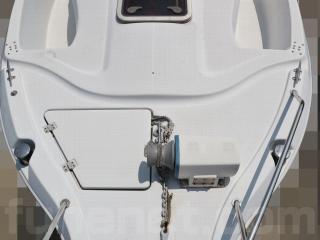 ◆フロントデッキにはバウスプリット&バウレール、電動アンカーウィンチ、キャビンにはスカイライトハッチが備わっています。