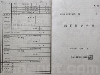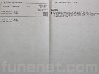 ◆この艇の正確な情報をお伝えする為に船舶検査証書と検査手帳を個人情報を伏せた状態で掲載しています。船体やエンジンの型式、定員、用途、登録上の船体寸法、航行区域、航行上の条件、進水年月日、検査の状況などをご確認下さい。