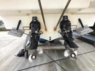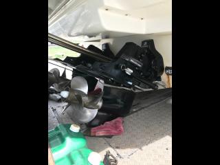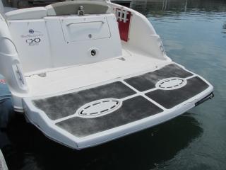 ウェイクやバナナボートなどの引っ張りものができるように、ワイドなトランサムステップを増設されています。とても頑丈です。