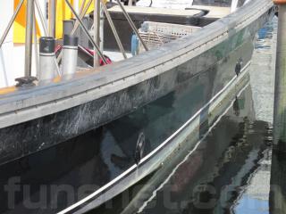 取材時は係留保管状態での取材でした。船底の状態やエンジンの始動、走行状態の確認等は一切行っておりません。ご見学の際には、全ての事項をご確認の上、ご購入をお決め頂きますようお願い致します。