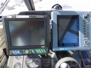 HONDEXのGPS魚探、KODENのレーダー、ステレオがセットされています。