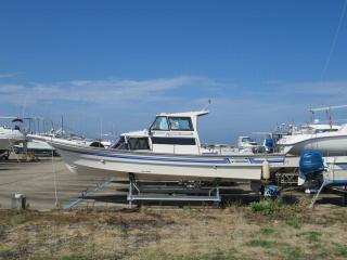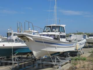 取材時は陸上保管状態での取材でした。船ネットドットコムではエンジンの始動状態や走行の状態の確認等は一切行っておりません。ご見学の際にはご試乗頂き、全ての事項をご確認の上、ご購入をお決め頂きますようお願い致します。
