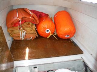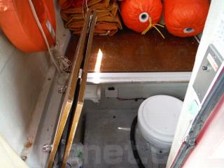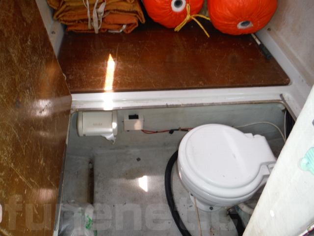 センターカディ艇ながらキャビンもあり、さらにマリントイレも装備されています。
