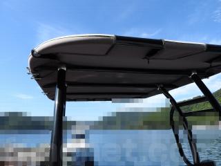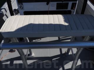 ◆コンソールの風防は綺麗な状態です、オーニングのフレームはアルミにマイト加工を施しています、座席シートは白色のクッションでフレームはアルミです。