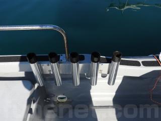 ◆タンク収納ハッチの横に竿立てがあります、釣り時には腰掛代わりにもなります。