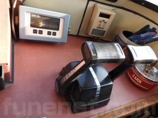 ◆ブリッジは広く操船し易いようです、舵角計、水温計設備しています。