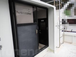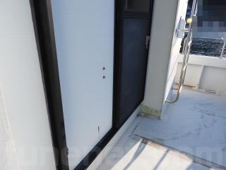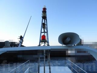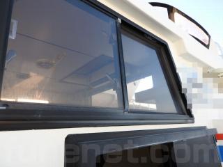 ◆ブリッジの窓、引き戸は船舶サッシです、前方には2つの回転窓があります。