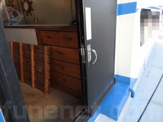 ◆客室内の右舷後部にトイレが有ります、使用はされてなくホースを取り外しています、ドアも修理が必要です。
