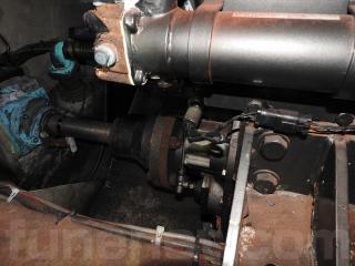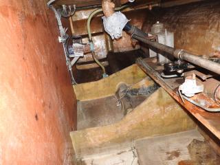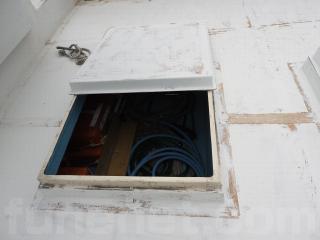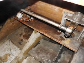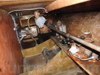 ◆舵場の入り口は客室の後部にあります、舵のスタンチュウブはシール式で海水を止めています。