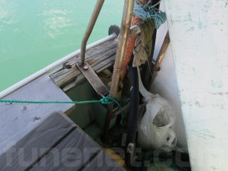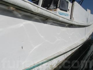 古い船体ですので、全体的にキズ、水垢、色褪せ、汚れ、塗装の剥がれやFRPの補修跡もあります。