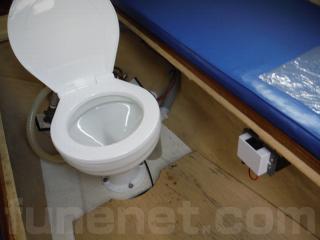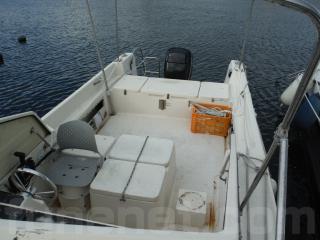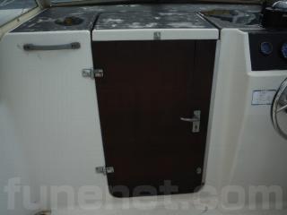 広い後部デッキに、キャビン、マリントイレも装備しています。