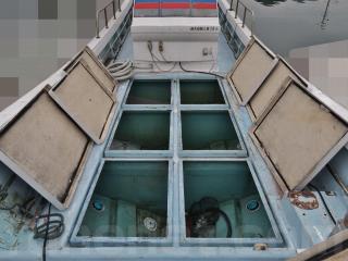 ◆デッキ面の詳細な様子やオモテ(フロントデッキ)のイケスやストレージのレイアウト、トモ(アフトデッキ)の舵箱内の機器類の様子などは動画に収めていますのでご確認下さい。