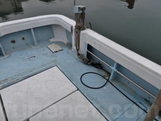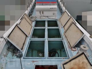 ◆この船体は船首が大きく反り上がっているので、前方が見づらい為、オーナー様が船首を低くする加工をされています。船体は船齢なりの経年劣化があり、船尾左舷側角に補修痕があるものの艇全体的に航行に支障があるような箇所は無いように見受けられました。