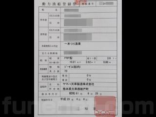 ◆この船は「漁船登録」船です。また、「日本小型船舶検査機構(JCI)」の検査済み船です。JCIでの用途は「釣船」で、登録総トン数は3.9トンです。この船の正確な情報をお伝えする為に動力漁船登録票及び船舶検査証書と検査手帳を個人情報を伏せた状態で掲載しています。また、船体銘板も掲載しております。