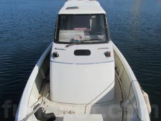 広めのデッキにワイドなキャビン。釣りやクルージングに活躍できるマルチなボートです。