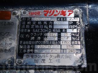 ◆マリンギアは新潟コンバーター製で微速装置付きです。なお、現オーナー様は微速装置を使われていませんので、リモコンレバーが付いていません。減速比2.48、シャフトはΦ70mmです。