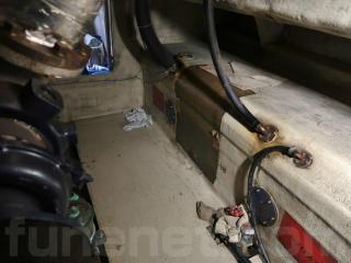 ◆取材時はエンジンの始動を行いませんでしたが、このエンジンはオーナー様がかかりつけの業者さんが載せ替えをされて、載せ替えをされた後も日常のメンテナンスをその業者さんが継続して現在も行われていますので、オイル管理や予防的部品交換もされていらっしゃるようです。なお、このエンジンは他船に搭載されていた8,000時間程度使った個体をその船から降ろして、クランクのメタルまでしっかり交換してのオーバーホールを施された後にこの船に搭載されたとの事でした。そのオーバーホールをしてこの船に搭載してからは約3,000時間程度稼働しているようです。