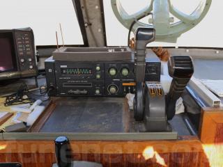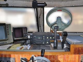 ◆操船部には、鈴木製インチカラーブラウン管魚探「ES-666」とJRC製マリンレーダー「JMA-2144」、同じくJRC製VHFトランシーバー「JHS-110」が装備されています。これらの機器は取材時に動作確認はしておりませんが、オーナー様によりますと動作するとの事です。ただ、レーダーとトランシーバーは「旧スプリアス規格の無線設備」の可能性があります。「旧スプリアス」につきましては当方までお電話いただくか総務省のホームページなどでもご確認いただけます。