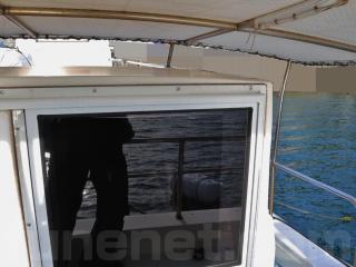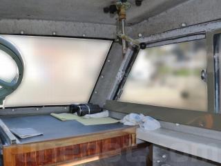 ◆操船部にはアンプ・スピーカーも装備されています。またフロントウィンドーは回転窓仕様ですがフロントウィンドーには傷か経年劣化による曇りが見受けられました。