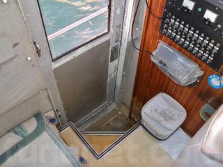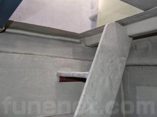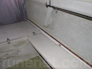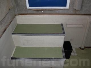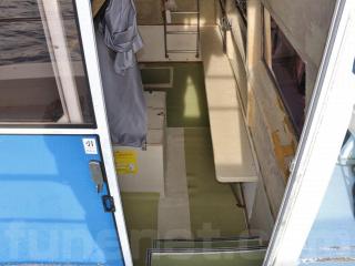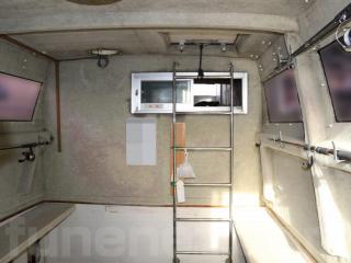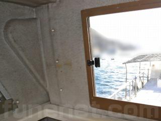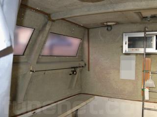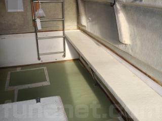 ◆客室にはアフトデッキ(トモ)からスライド扉を開けて入る事ができます。扉を開けると3段の階段で下がり床になっています。ゆえに天井高さは高く、ゆったりとしています。また、両側に窓も付いています。なお、客室内は左右にベンチシートが設置されたシンプルな造りとなっていますので、客室としてはもちろんの事、荷室や、居住スペースなどへの転用も容易だと思われます。