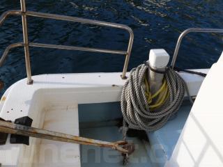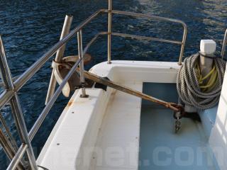 ◆この船体は船首に大きなホースビットとアフト(トモ)に広い客室が備わっているのが特徴です。船体は船齢なりの日焼けなどによる経年劣化は見られるものの艇全体的に航行に支障があるような大きな損傷なども無いように見受けられました。船齢28歳(取材時)としてはハルの傷も少なく全体的に綺麗な個体ではないかと思います。