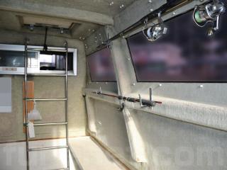 ◆操船部には両舷のスライドドアから入る事ができます。また操船部の両窓及び後方の窓はスライドで開閉可能で風通しも良さそうです。なお、操船席からの見切りも良好でした。